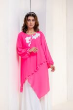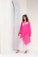 Georgette top with white machine embroidered motive.